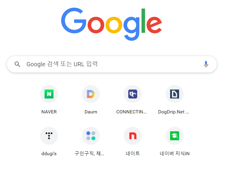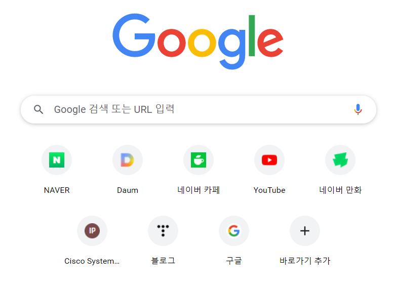 위 사진과 같이 자주가는 사이트로 메인 화면이 설정이 되어 있는 경우,