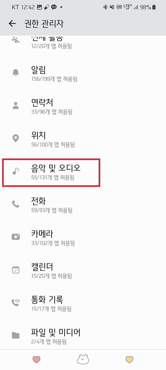 4. 내리다 보면 보이는 음악 및 오디오를 선택해줍니다.