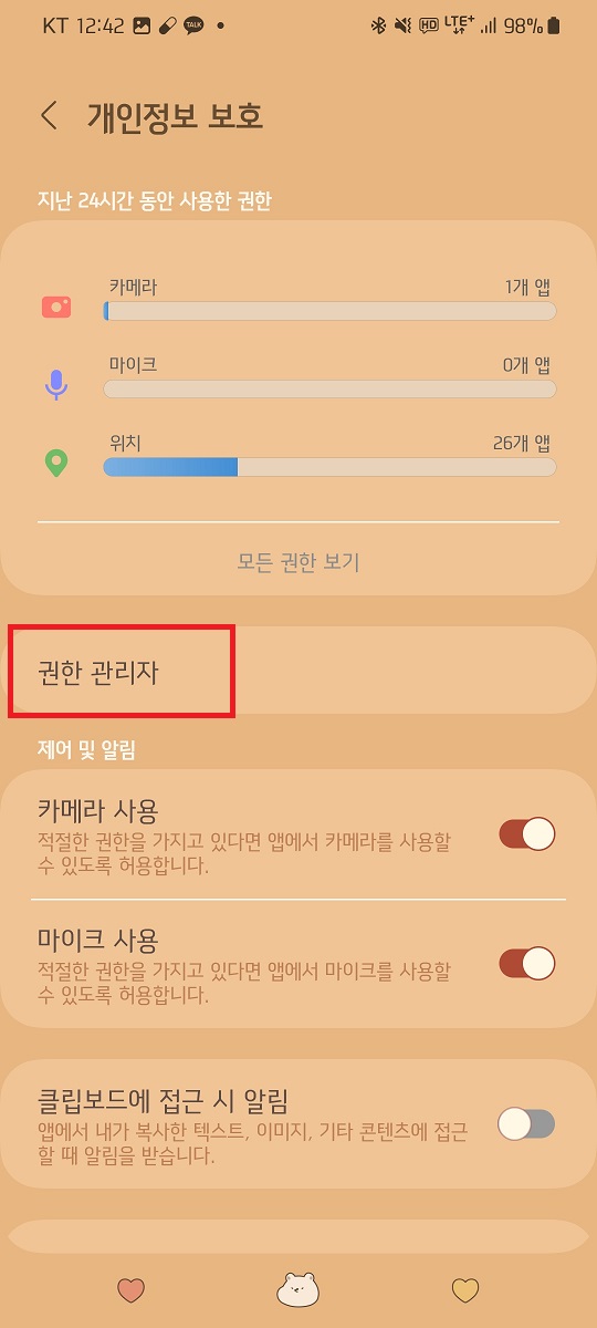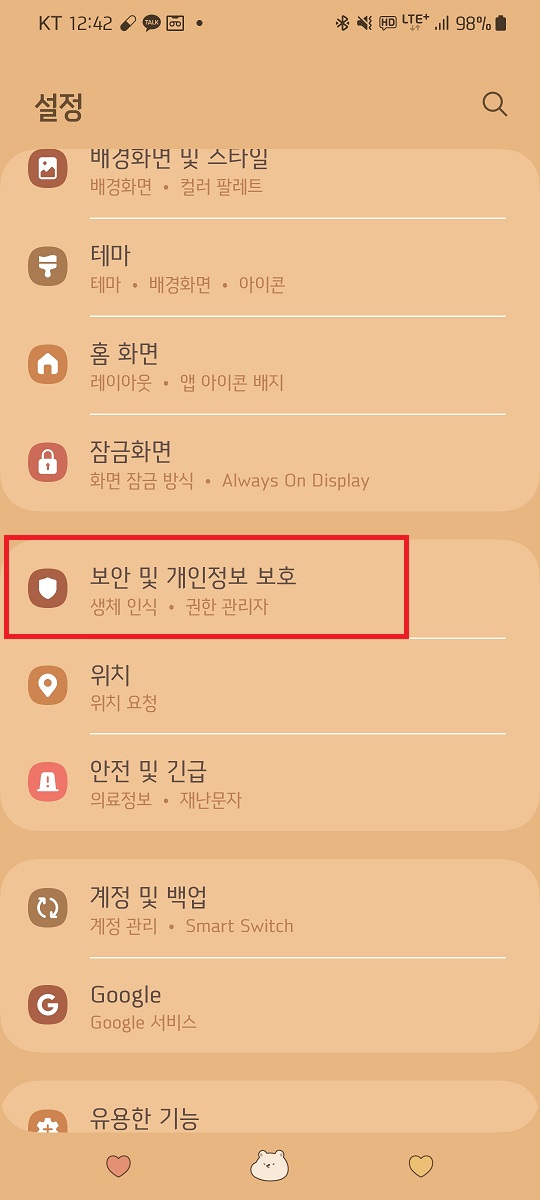 1. 설정에서 보안 및 개인정보 보호를 선택해줍니다.