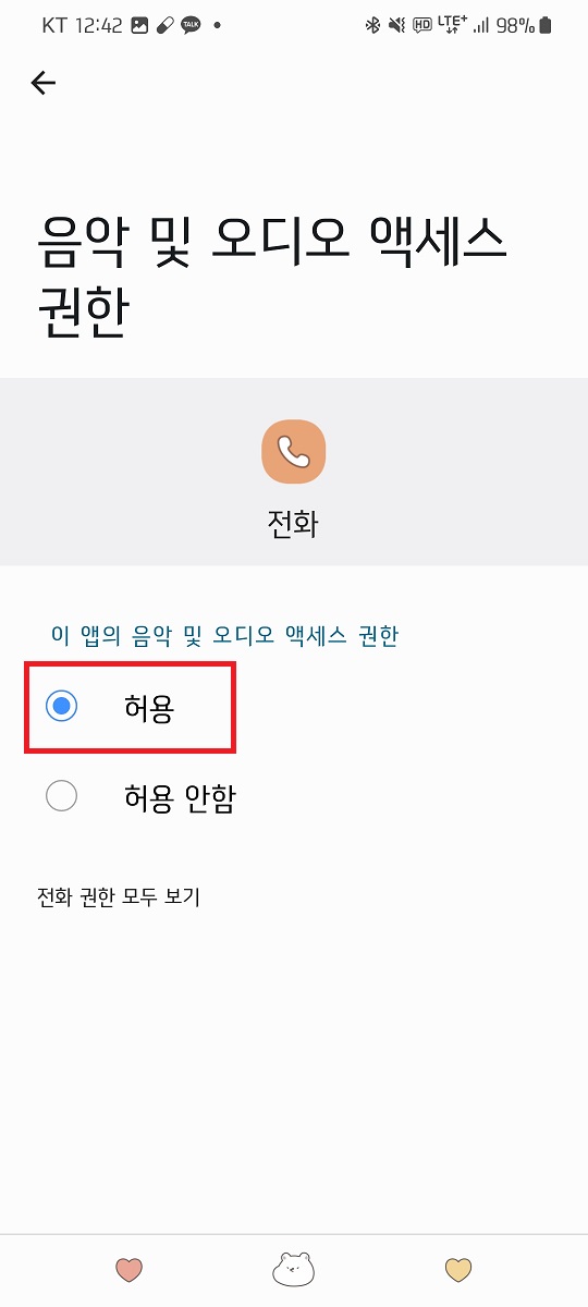 6. 허용으로 선택해줍니다. 그리고 다시 통화내역으로 가시면 바로 재생하실수 있습니다.