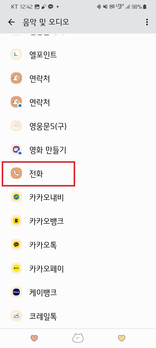 5. 쭉 내리셔서 전화를 찾아서 선택해줍니다.