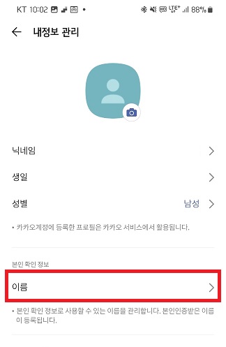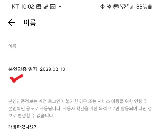 4. 본인 확인 정보에 이름을 선택해줍니다.