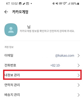 카카오톡 서비스 사용시 인증 받은 사용자와 정보가 일치하지 않을 때,