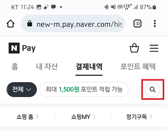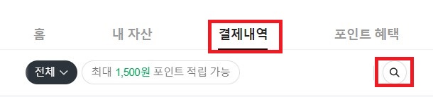 3. 결제내역에서 돋보기 모양을 눌러줍니다.