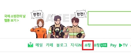 1. 네이버 메인 화면에서 쇼핑을 눌러줍니다.