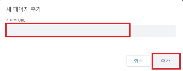 3. 사이트 URL에 원하는 사이트 주소 입력 후 추가를 눌러줍니다.
