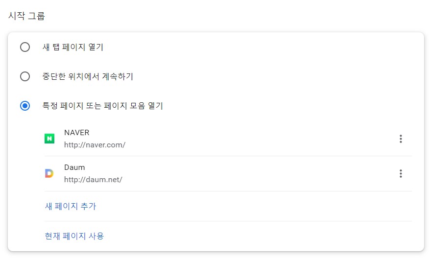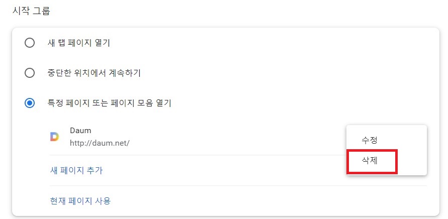 1. 크롬 주소창에 chrome://settings/onStartup 입력 후 접속합니다.