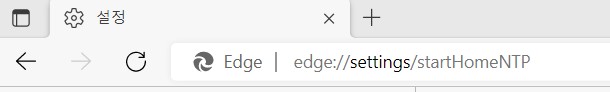 1. 엣지 주소창에 edge://settings/startHomeNTP 을 입력합니다.