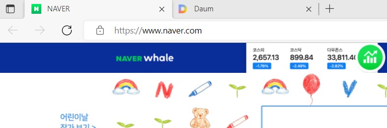 5. 크롬 실행시 네이버, 다음이 자동으로 실행되는 모습입니다.